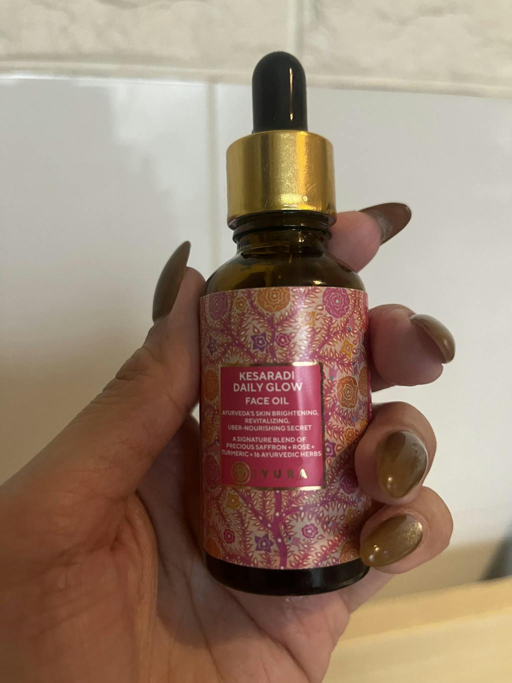 This precious bottle of oil not only contains Saffron - an extremely expensive glow-giving herb but also rose oil, known for its beauty, turmeric and other powerful Ayurvedic herbs and unique flowers like Manjishtha, Lodhra, Priyangu, Kamal, Palashphool and more.